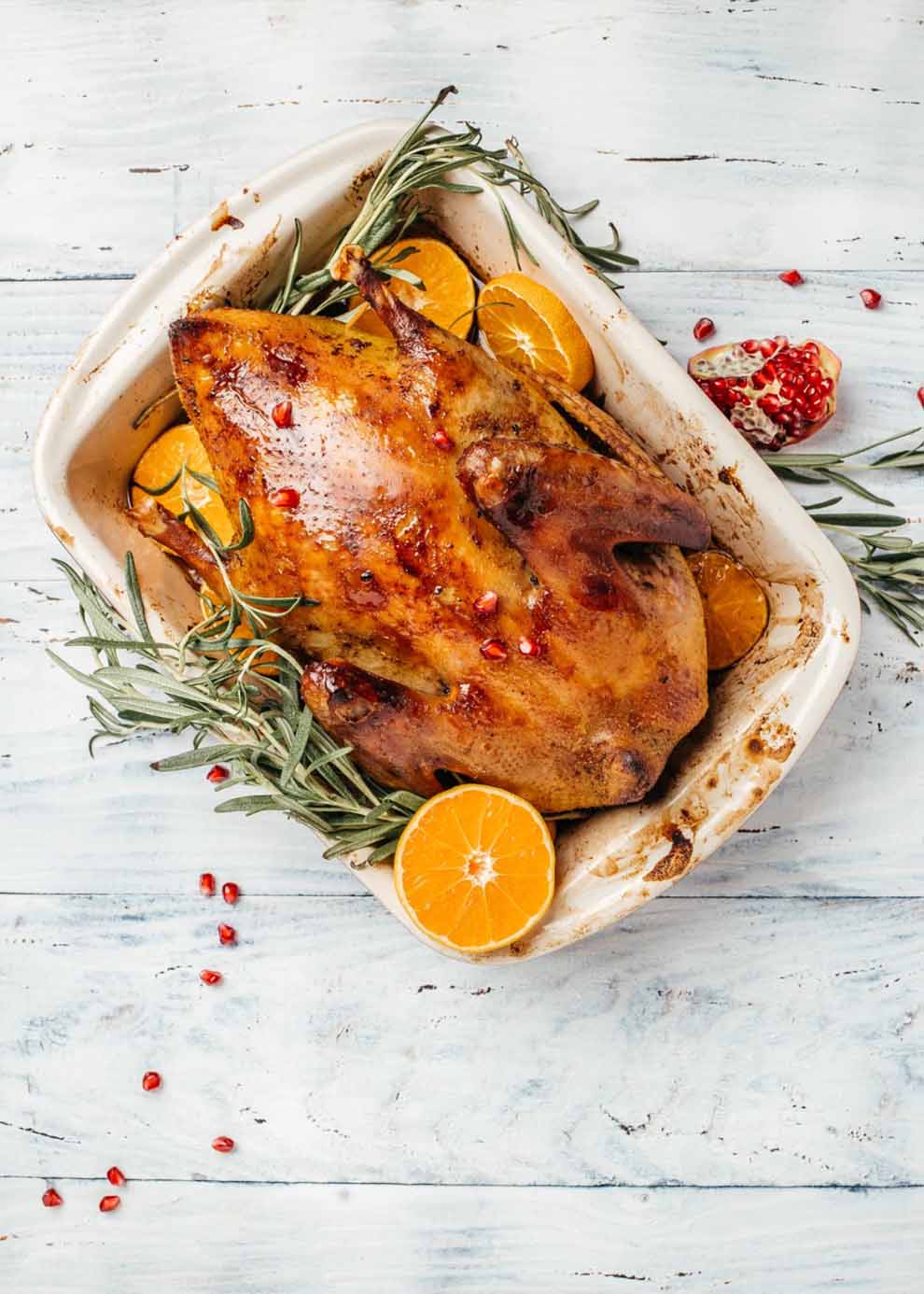 Eine Ente (ca. 2 kg) innen und außen mit 2 TL „5 Gewürze China Art“, Salz und etwas Sojasauce einreiben. Mit Orangenscheiben und Frühlingszwiebeln füllen, dann bei 180 °C ca. 90 Minuten knusprig braten. Dazu passt ein knackiges Gemüse aus dem Wok – ein Festessen mit authentischem China-Geschmack.