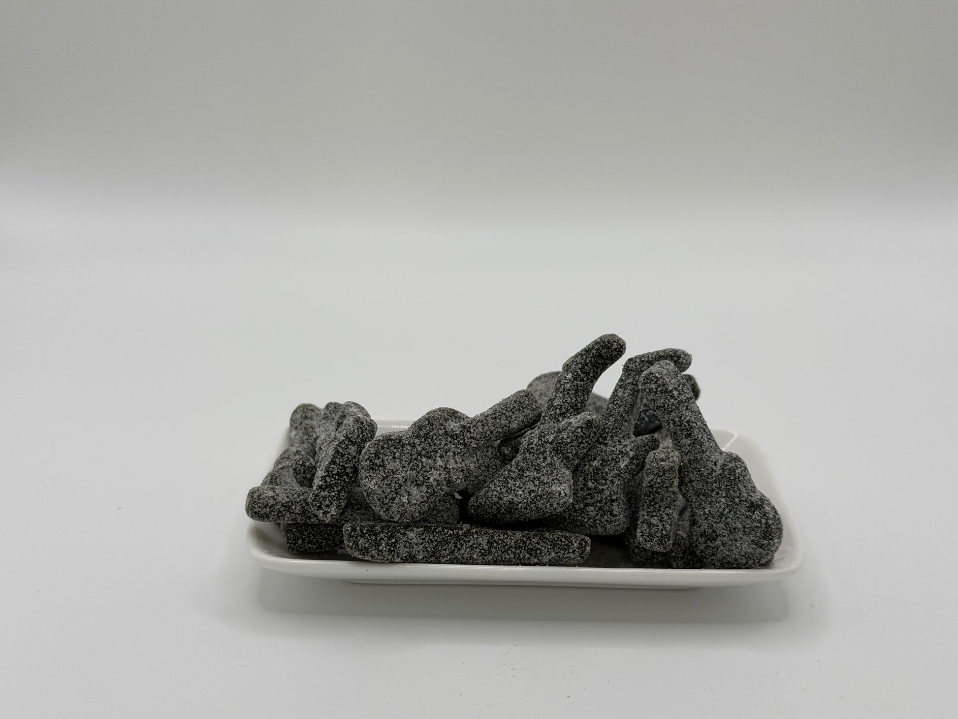 Zutaten: Zucker, Glukose-Fruktose-Sirup, Gelatine, Ammoniumchlorid, Lakritz Aromen, Farbstoff E153 (Pflanzenkohle), Chilieextrakt.